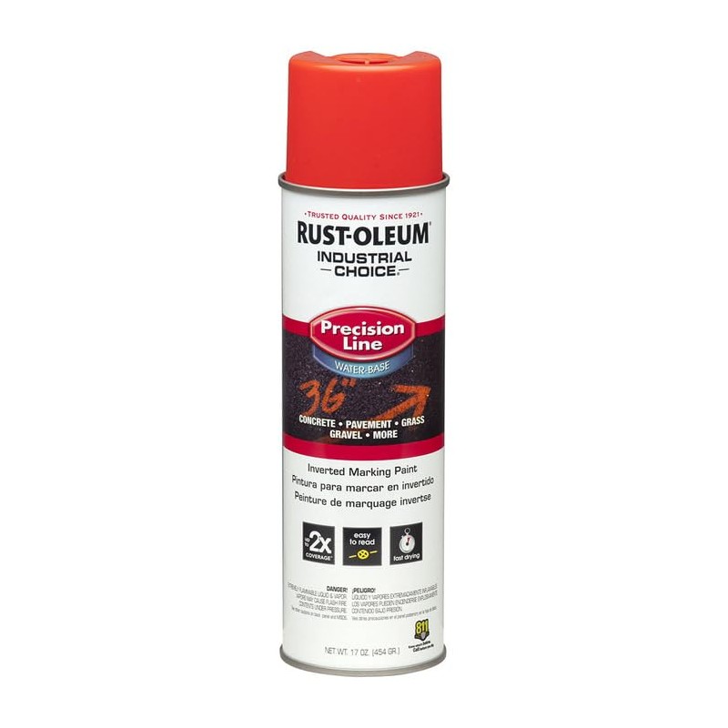Rust-Oleum 203037-12PK Industrial Choice Inverted Water-Based Marking Spray Paint, 17 Oz, Fluorescent Red-Orange, 12 Pack