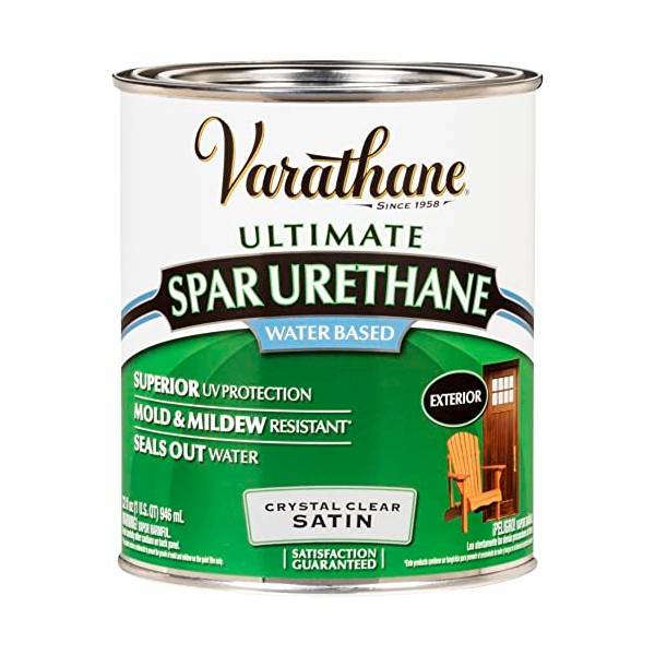 Varathane 250241H Ultimate Water-Based Spar Urethane, Quart, Crystal Clear Satin