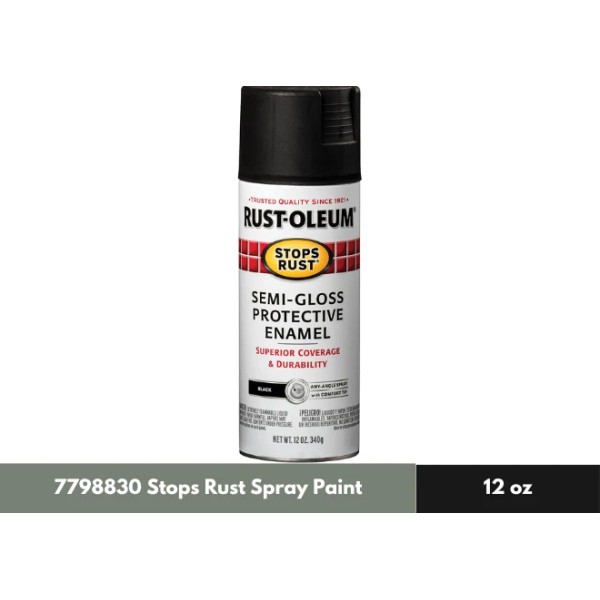 Rust-Oleum 7798830 Stops Rust Spray Paint, 12 oz, Semi-Gloss Black