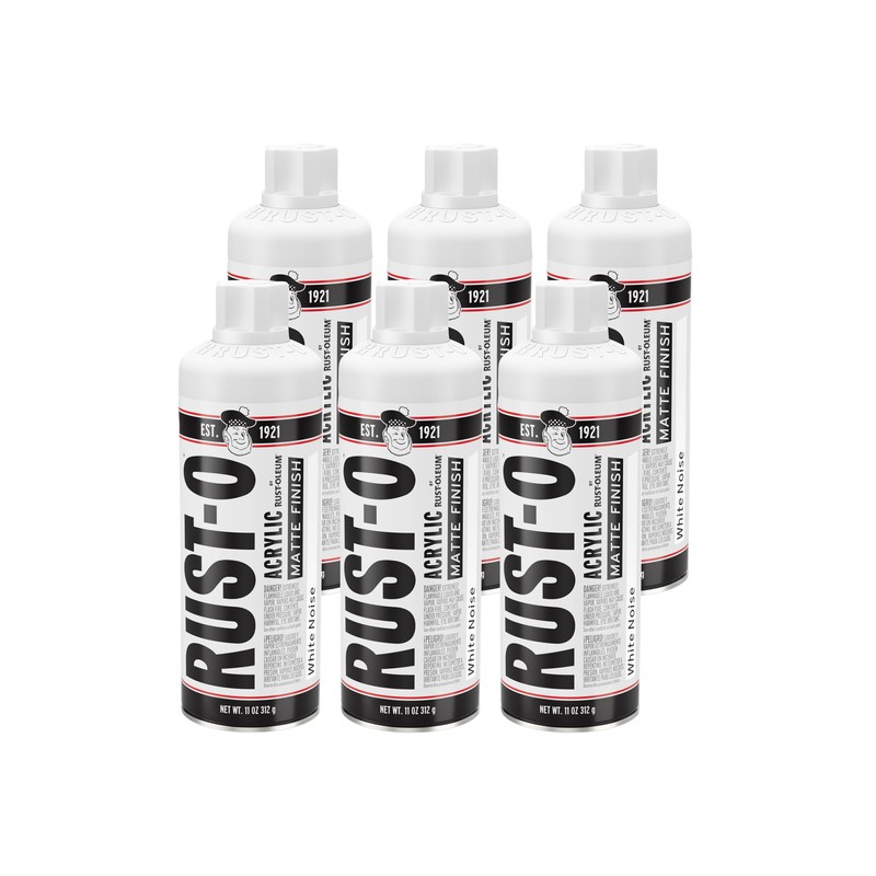Rust-Oleum Rust-O Acrylic Artist Spray Paint, 11 oz, Matte White Noise, 6 Pack
