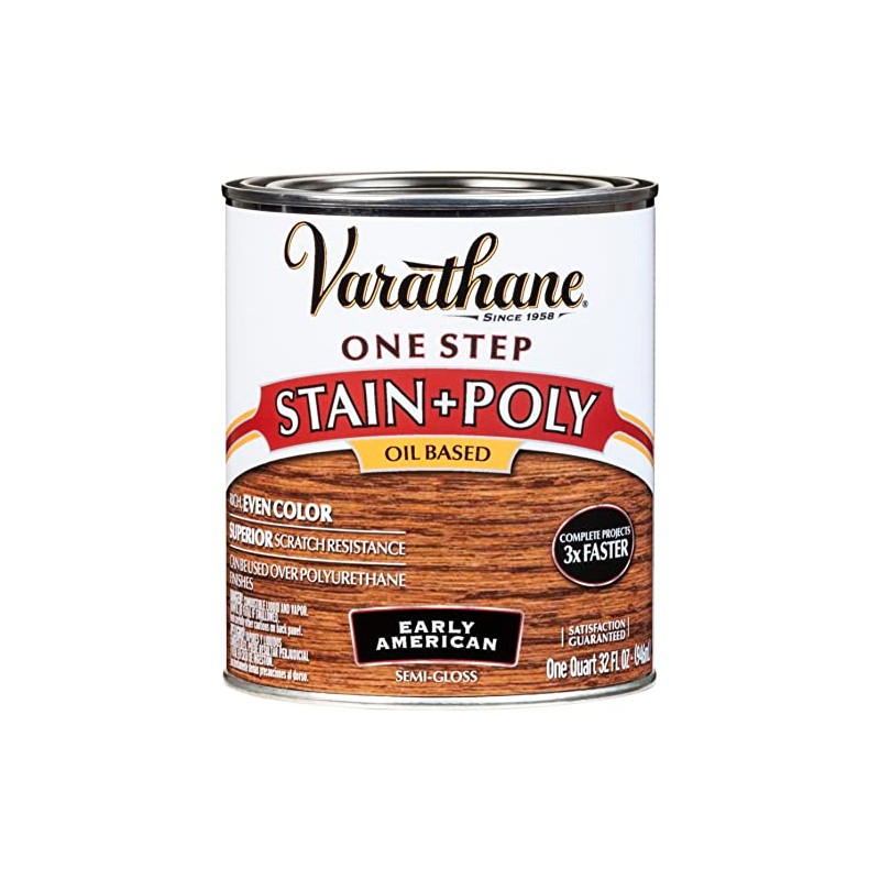 Varathane 225249H Oil-Based One Step Stain + Poly, Quart, Early American