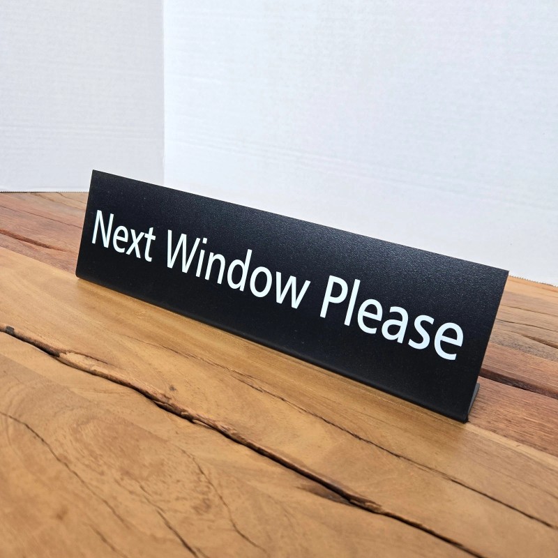 Rustalgic Next Window Please - Black Plexi Office Countertop Sign - Qty. 5
