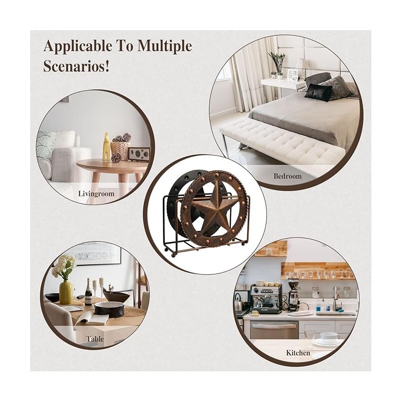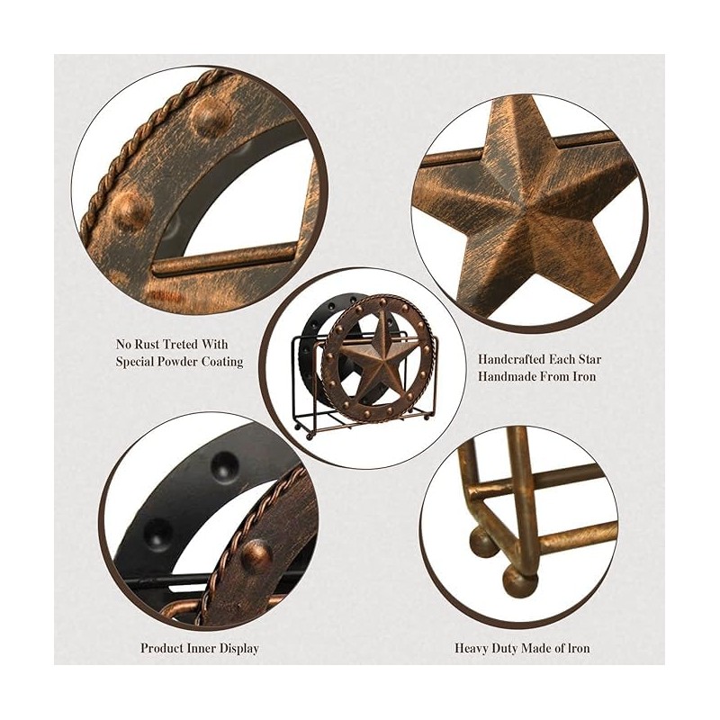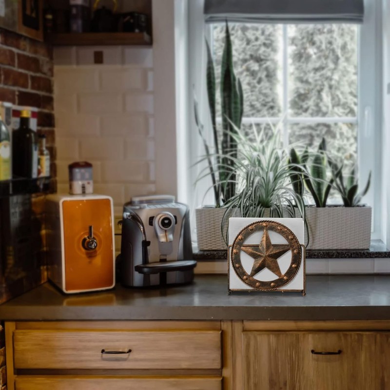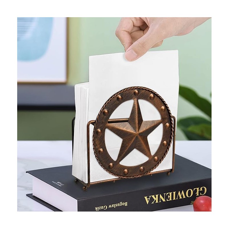 - Texas-style metal star design: This brown napkin holder features a unique Texas metal star shape, combining practicality and decoration, adding a touch of Western style to your dining table, kitchen, or office, suitable for American countryside, retro, or modern home styles.