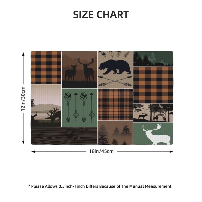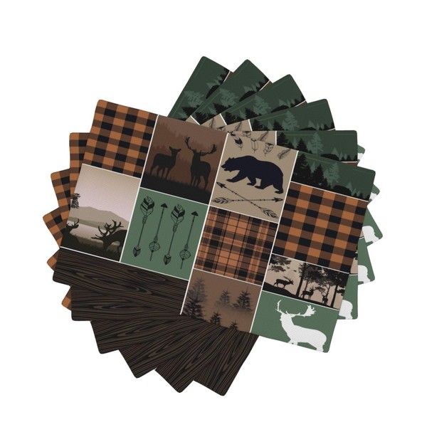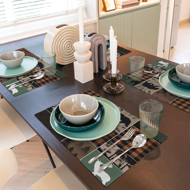 Rustic Country Cabin Hunting Moose Place Mats Set of 6,Retro Green Patchwork ...