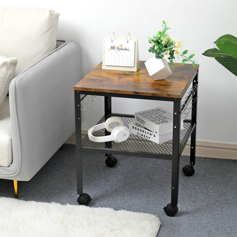 - STURDY & USEFULLY: Use strong metal frame structure, maximum bearing capacity is 143 lb (storage shelf is 44 lb), good for mini fridge stand, printer stand, aquarium stand, don't worry falling apart and deformation, plus 2 iron bars on the side with 10 hooks, more usefully.