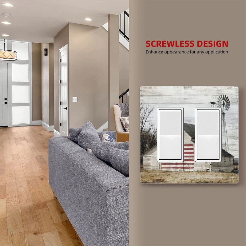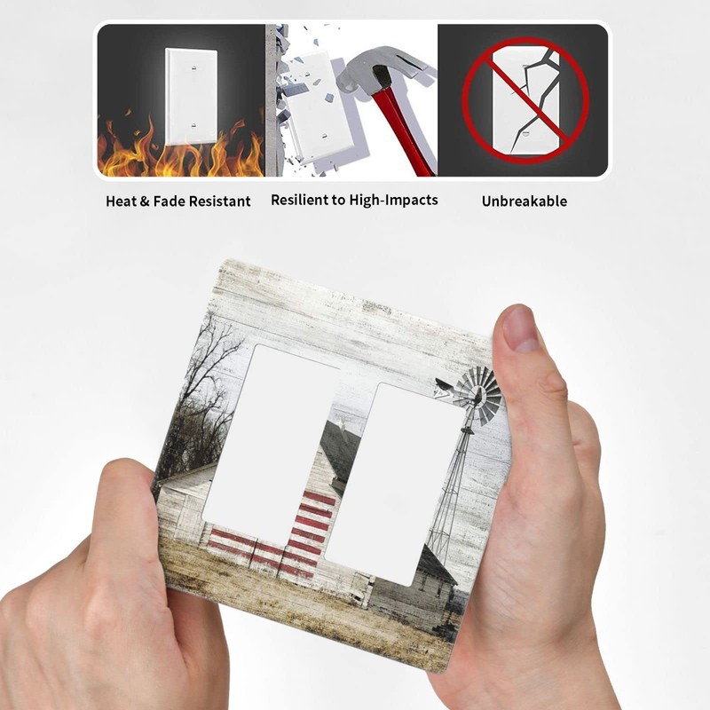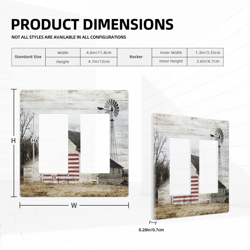 Rustic Old Barn American Flag Windmill Double Rocker Light Switch Cover Decorative 2 Gang Wall Plate Decora Switchplate GFCI Electrical Faceplate for Kitchen Bathroom Home Decor