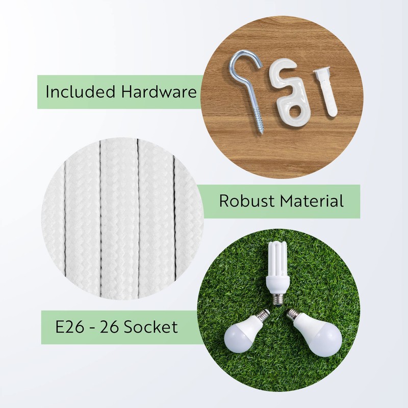 - Perfect for your DIY Projects and Special Occasions: This pendant lamp cord is a great lighting solution for all décor styles and Do-it-yourself projects. You can combine this cord with any lamp shade to create your own design of mason jars, paper lanterns, plant lights, grow lights, cage lights and many more. It is also a great lighting solution for your wedding, birthday, Christmas, Thanksgiving, Halloween, Easter, Diwali or any other festival/ party decoration.