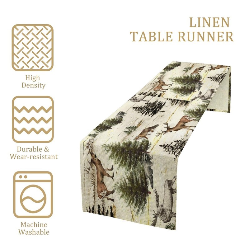 Rustic Woodland Table Runner, Wild Animal Bear Deer Fox Wolf Country Lodge Cabin Dinner Table Decoration for Home Kitchen Dining Dining Table Decoration 13"x36"