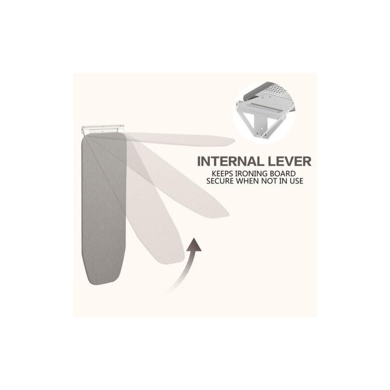- 【Wide application】The wall ironing board is suitable for the sewing room, household, laundry, etc. And it is ideal for ironing your clothes, pants, shirts, etc. Our ironing board is equipped with an internal lever to keep the ironing board stable and secure when in use.