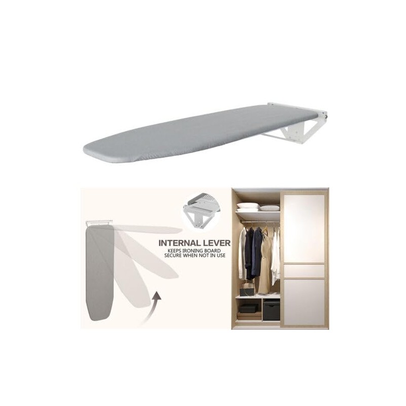 - 【Wall mounted ironing board】Wall mounted folding ironing board, designed for business professionals and daily home use, saves space and is convenient to use. The wall mounted ironing board has just the right size to keep in your bedroom closet, laundry room, or dorm. It can be folded up to fit the wall, so it is very space-saving.