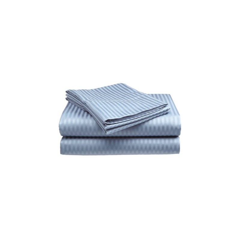 Ruthy's Textile 4 Piece 400 Thread Count 100% Cotton Sateen Dobby Stripe Sheet Set (King, Light Blue)