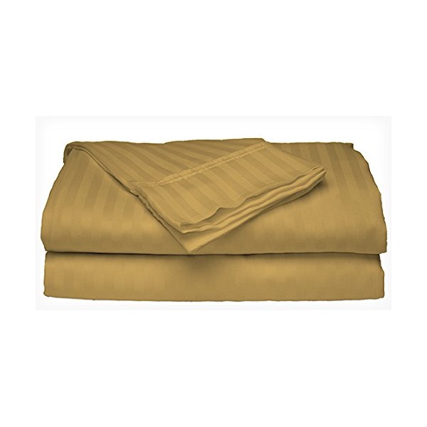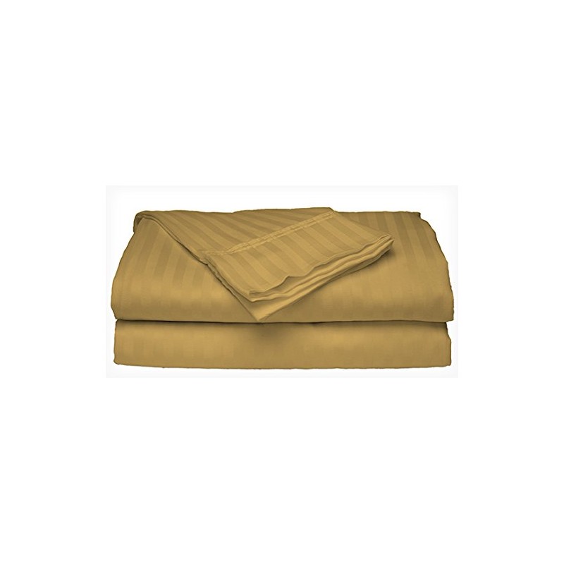 Ruthy's Textile King Size Gold 300 Thread Count 100% Cotton Sateen Dobby Stripe Sheet Set