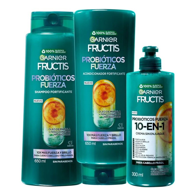 Rutina Fructis Probióticos: Shampoo, Acondicionador Y 10en1