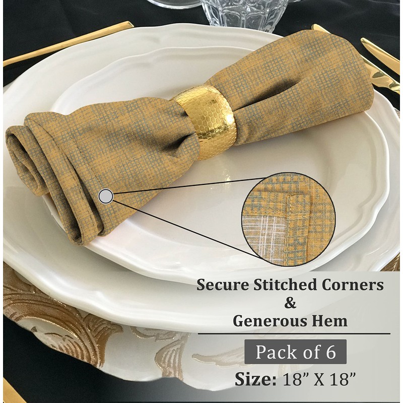 - Paquete económico: Están cuidadosente cortados y cosidos con esquinas cosidas seguras perfectas y un dobladillo generoso. Nuestras servilletas de lino vienen en un paquete económico de 6 piezas que miden 18 x 18 pulgadas cada una.