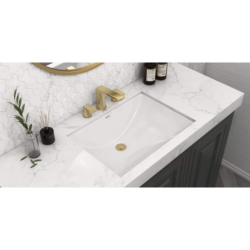Ruvati is one of the premier names in kitchen and bath fixtures. With manufacturing and distribution facilities in US, Europe and Asia, Ruvati makes products that are loved by customers, and trusted by leading interior designers and builders. This undermount ceramic sink from Ruvati's Krona collection fits seamlessly into your bathroom vanity. The sink is constructed of thick solid porcelain ceramic for superior strength and long lasting durability. The vitreous porcelain enamel forms a smooth glossy surface that is extremely resistant to scratching, chipping or crazing. The smooth surface drains water easily and does not stain keeping your sink dry and easy to clean. Undermount Installation - Mounting Clips and Cutout Template included for a perfect and secure undercounter installation. Thick solid porcelain ceramic construction for extreme durability. Rear drain position - aligns with the faucet spout and maximizes storage space in the cabinet under the sink. Integrated overflow to prevent accidental flooding. Overflow hole stays out of sight, maintaining the beauty of the sink. Smooth glazed surface is non-porous and resitant to scratching, chipping or crazing. High-gloss vitreous porcelain surface does not stain and drains water readily keeping your sink clean and dry. Curved shape of the bowl ensures perfect water drainage and makes it easy to clean. Exterior Dimensions: 21" (wide) x 14-1/2" (front-to-back) x 8-1/4" (depth) Interior Bowl Dimensions: 19-1/2" (wide) x 13" (front-to-back) x 6-1/2" (bowl depth) Standard 1-3/4" drain opening with overflow. Drain not included. Pop-up drain not included. Requires pop-up drain with overflow. Ruvati Part # RVA5101CH, or any standard pop-up drain with overflow. Included in box: Sink, Mounting Clips, Cutout Template and Installation Guide Ruvati USA Limited Lifetime Warranty.