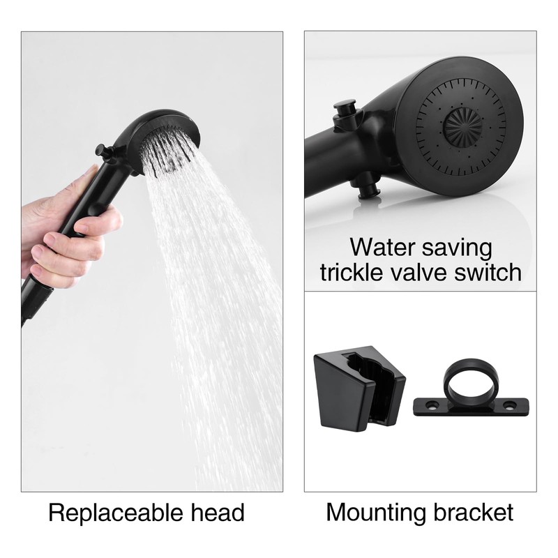 - One For All Kit - Handheld Showerhead Set With Water Saving Trickle Valve Switch (Not An On/Off Switch) And A 60” Durable Synthetic Hose Includes Matching Mounting Bracket And Guide Ring. One Rv Shower Kit Satisfies Your Needs.