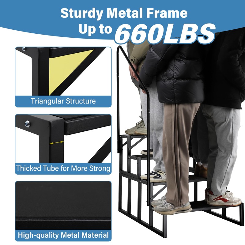 - High Weight Capacity: Boasts 660 lbs capacity, easily supports average adult with gear. Reliable for routine entries or hauling camping stuff