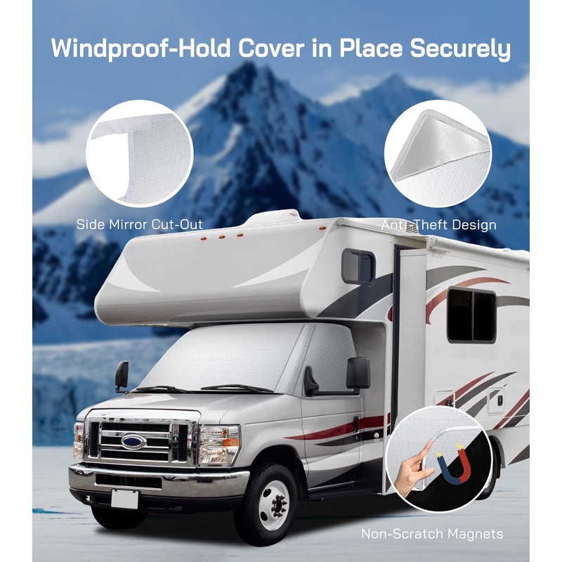 - All Seasons Use: The RV windshield cover provides all-season protection from extreme heat, heavy rain, snow, wind gusts, dust, leaves and dirt