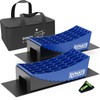 • WHAT YOU GET: Comes with two blue curved levelers, two black chocks, two black rubber grip mats, and one level. All of them are stored in the convenient black carrying bag. Perfect kit, and makes leveling the RV much easier!