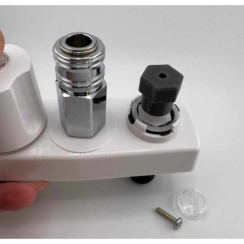 • WIDE COMPATIBILITY: Designed to replace recessed tap handles on RV exterior showers, compatible with Valtera, Dura Faucet, Rec Pro, Empire, and other brands with quick connect hose systems positioned between the tap handles.