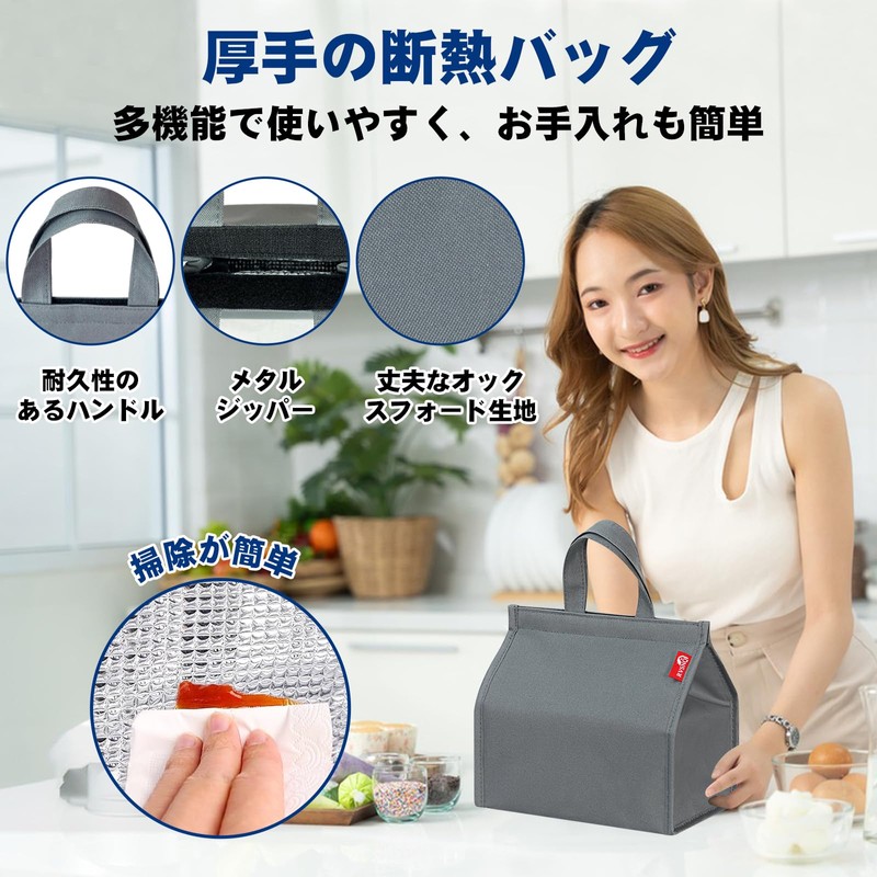 - 【PORTABLE & EASY TO CLEAN】 The reinforced end of the lunch bag handle makes it easy to carry and won't pinch your hand even when you carry it for a long time. The oil stains on the inside of the aluminum foil can be easily wiped off with a soft cloth, then dry the inner layer with a soft cloth. Note: Do not use hot water or machine wash