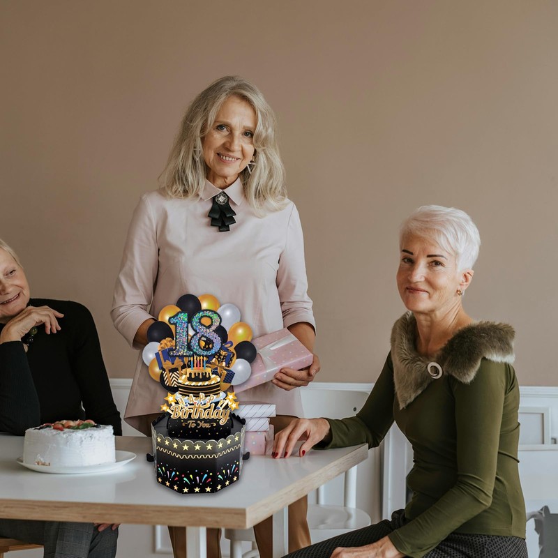RVSWIHFA 18th Birthday Card - Unique 3D Pop-Up Design - Luxury Black and Gold...
