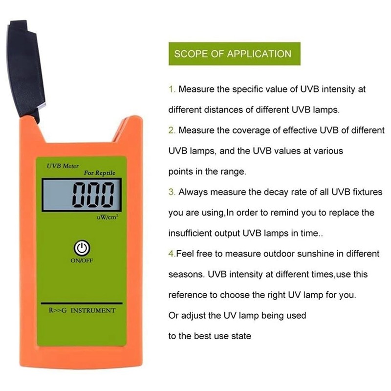 - Widely used for daily UVB testing of all types of reptile lamps, effectively helping you choose the best angle and distance of your own bulb.