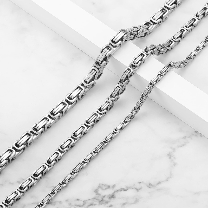 - Size recommendation: Generally, men can choose a 6 mm wide and 60 cm long Byzantine chain, or a 4 mm king chain if you like it finer, or an 8 mm king chain if you like it thicker. For women or teenagers, choose a 4mm wide and 50cm chain. (Recommended length: men usually choose chains of length (55 cm or more chain!)