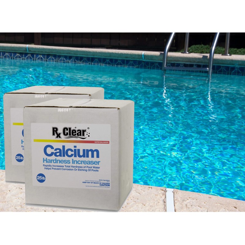 Our Calcium Plus will raise your pool or spa water hardness level while preventing foaming and pool equipment corrosion. In some areas of the country, source water for pools has insufficient calcium hardness, which is needed to prevent corrosion of pool equipment and surfaces. Calcium Hardness Increaser effectively eliminates this problem and when used with other balancing chemicals, assures proper water balance. Just simply add our Calcium Hardness Increaser to your pool whenever the hardness level of your pool water drops below 150 ppm. Our Rx Clear® Calcium Booster also helps prevent corrosion of plaster finished, and metal equipment!
