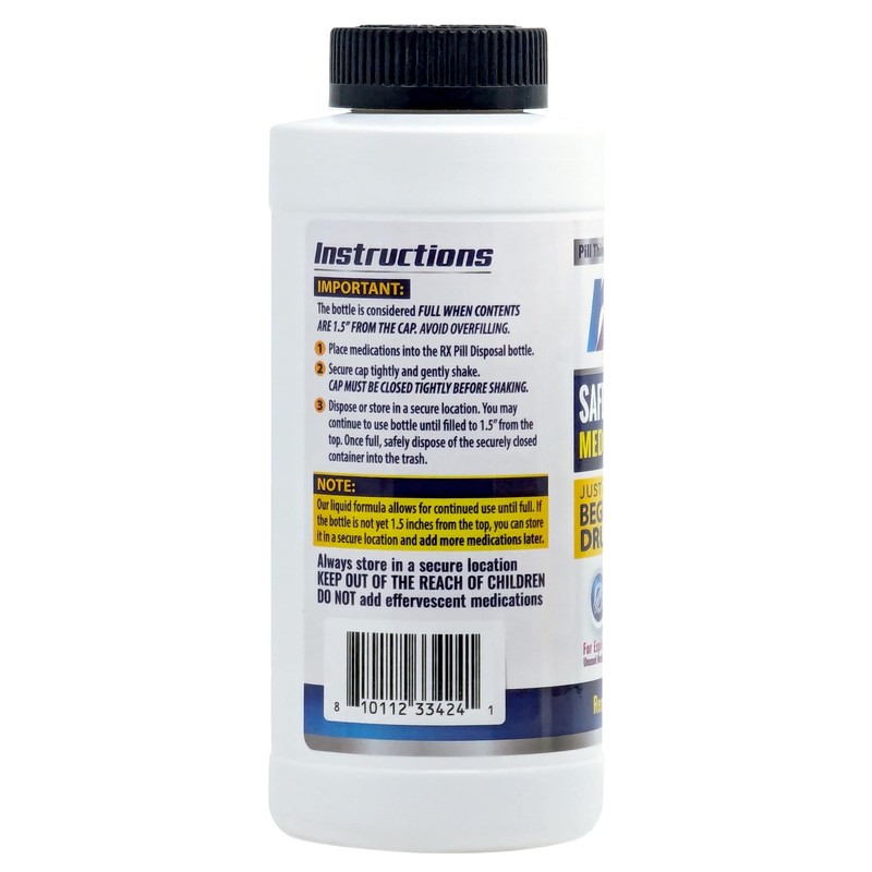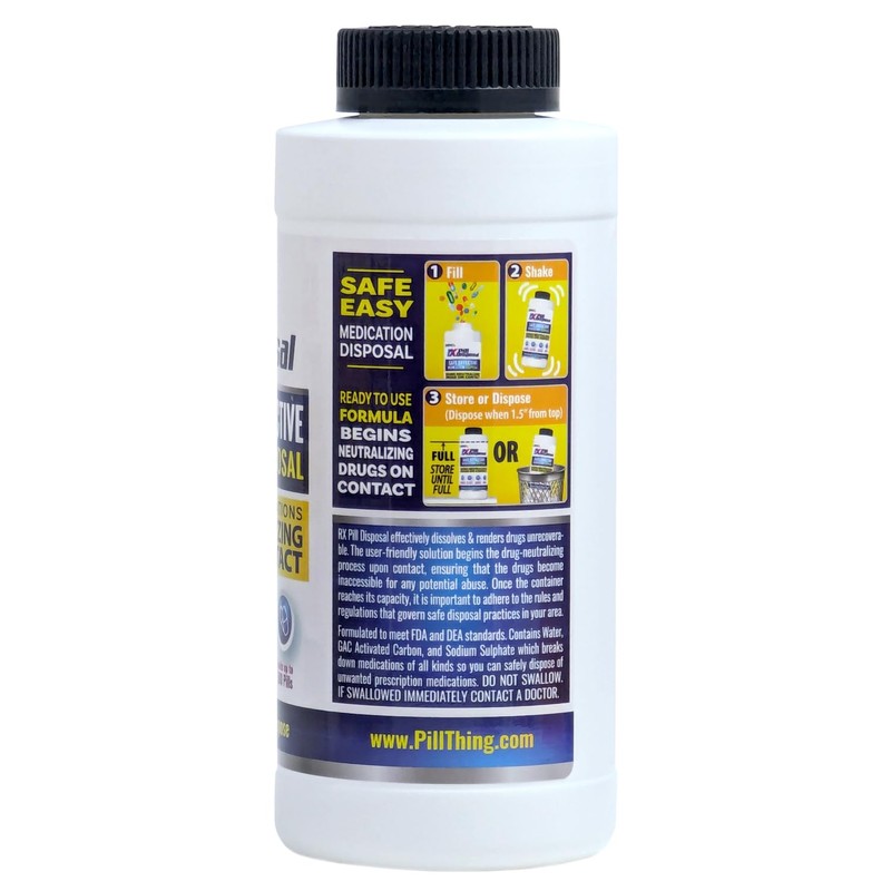 Experience the ultimate convenience and efficiency with our RX Pill Disposal liquid solution system. This innovative system, housed in a 16 oz bottle, can safely neutralize up to 500+ pills, making it an ideal choice for both home and clinical environments. Formulated to meet FDA and DEA standards, our eco-friendly system is pre-mixed with a safe chemical drug deactivating solution, eliminating the need for additional preparation. Using it is as simple as loading your unused medications, securing the cap, and gently shaking the bottle to start the drug-neutralization process. Designed for flexibility, you can continue adding medications up to 1.5 inches from the top of the bottle, ensuring a mess-free experience. Even if the bottle isn’t full after the initial use, you can store it securely for future disposals. This system effectively renders drugs unrecoverable, protecting against potential misuse. It’s compatible with a wide range of medications, including DEA-controlled substances, making it the go-to solution for safe and responsible disposal. Plus, it’s now HSA/FSA eligible, further enhancing its value for those committed to responsible medication management.
