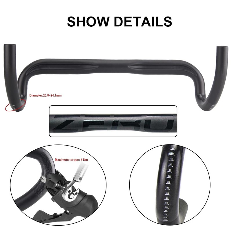 - 1.Carbon handlebars road bike brand: RXL SL; Weight:Approx 180g (420mm); Color: Black; Finish: UD Matte; drop bars handlebars diameter:31.8mm; Carbon handlebar width: 400/420/440mm; Drop:123mm; Reach:77mm; Torque:4Nm.