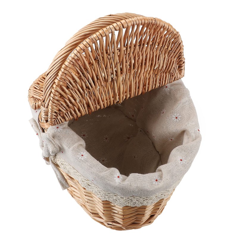 RXMORI Willow Basket Picnic Basket, Handmade Wicker Picnic Basket with Handle and Double Lids, Traditional Picnic Hamper, Small Handmade Woven Eggs Candy Basket(#1)