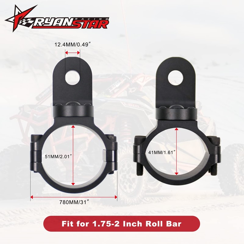 RYANSTAR RACING 360° Roating UTV Mount Bracket Flag Mount Whip Light Mount Fits for 1.75-2inch Roll Bar Compatible with Polaris RZR Can Am Commander Talon 1000