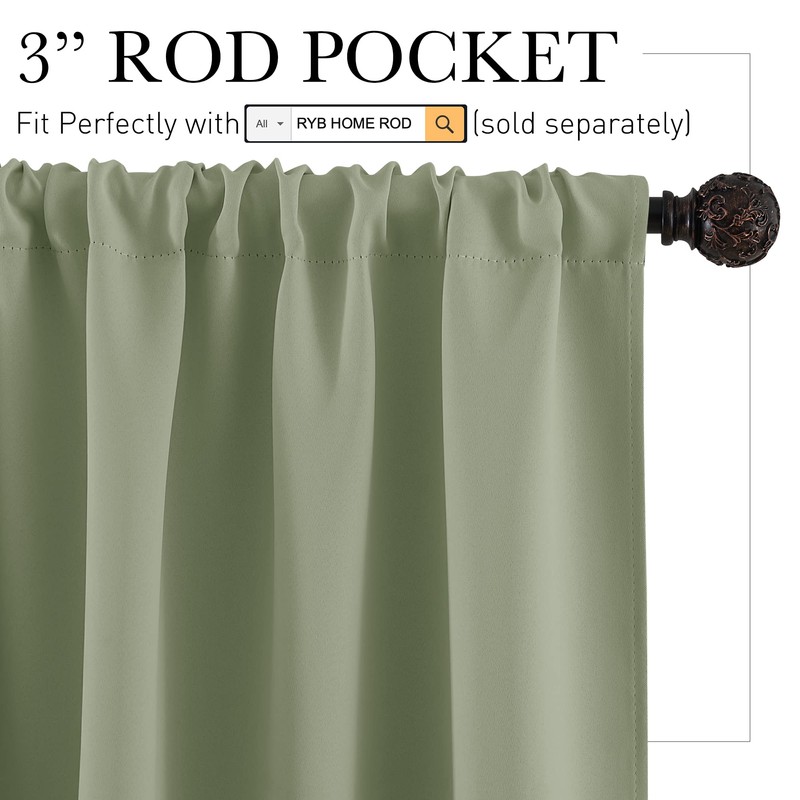 RYB HOME Blackout Curtains for RV Camper Windows, Privacy Thermal Insulating Mini Curtains & Drapes for Bedroom Bathroom Kitchen Door Window Farmhouse Cover, W 42 x L 36 inch, Sage Green, 2 Panels