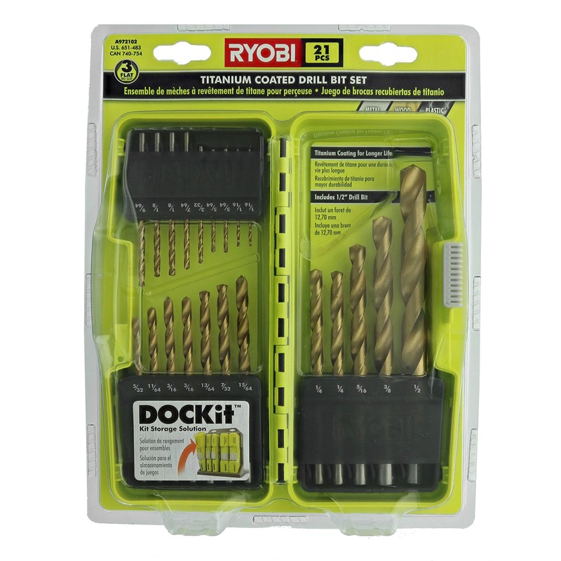 Ryobi A972101 21 Piece Titanium Drill Bit Set w/ Plastic Locking Storage Case and Foldout Rubberized Organization Solution