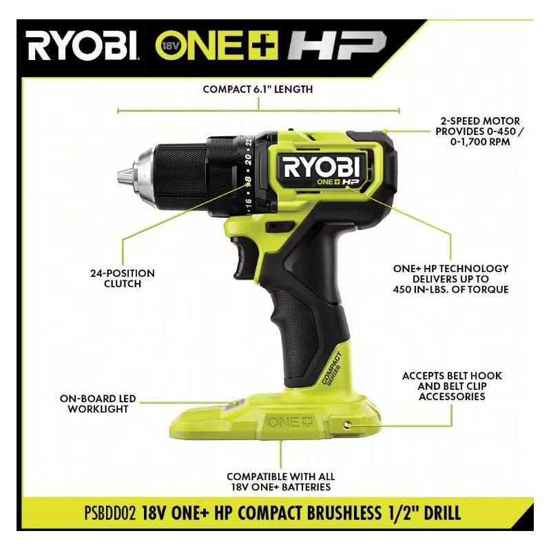 - Compact size at 6.1" in length and lightweight. ONE+ HP Brushless technology delivers more power, longer runtime, and longer motor life.