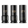 - Deep Drive Impact Socket Sizes 1 x ½" 17, 19 and 21 mm