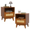 Ryvorbe Rattan Nightstand Set of 2, Farmhouse End Table with Solid Wood Legs, Small Boho Mid Century Modern End Table with Storage for Bedroom, Living Room- Boho Style