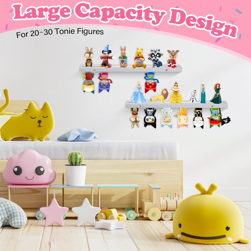 - 【Perfect Gift】 This tonie shelf magnetic can not only store figurines, but also beautify children's room as a decoration. The wall-mounted design is safe and space-saving.It's a great gift for parents and kids.