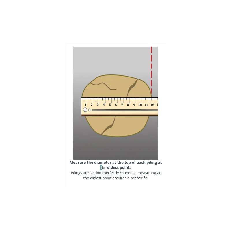 Our piling caps are made from UV-stabilized polyethylene which is designed to weather the elements. They provide an economical way to enhance the overall look of your dock while helping to protect your wooden pilings from weather and water damage. For quick reference, each cap has its size stamped on the interior.