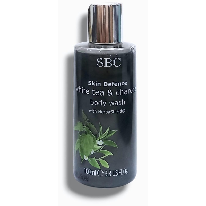 S.B.C. Skin Defence - White Tea & Charcoal Body Wash with HerbaSheild® | Formulated with Anti-Oxident Rich White Tea & Deep-Cleansing Charcoal to Effectively Remove Impurities | 100mL[Travel Size]
