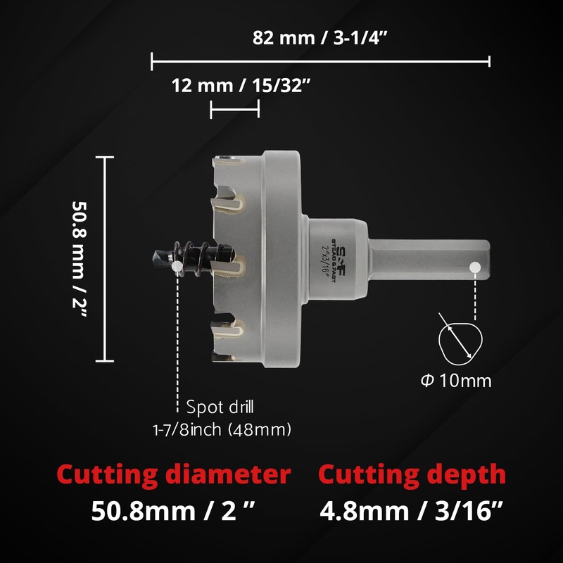 S&F STEAD & FAST 2 inch Metal Cutting Hole Saw for Stainless Steel, Premium Carbide Hole Cutter for Heavy Duty