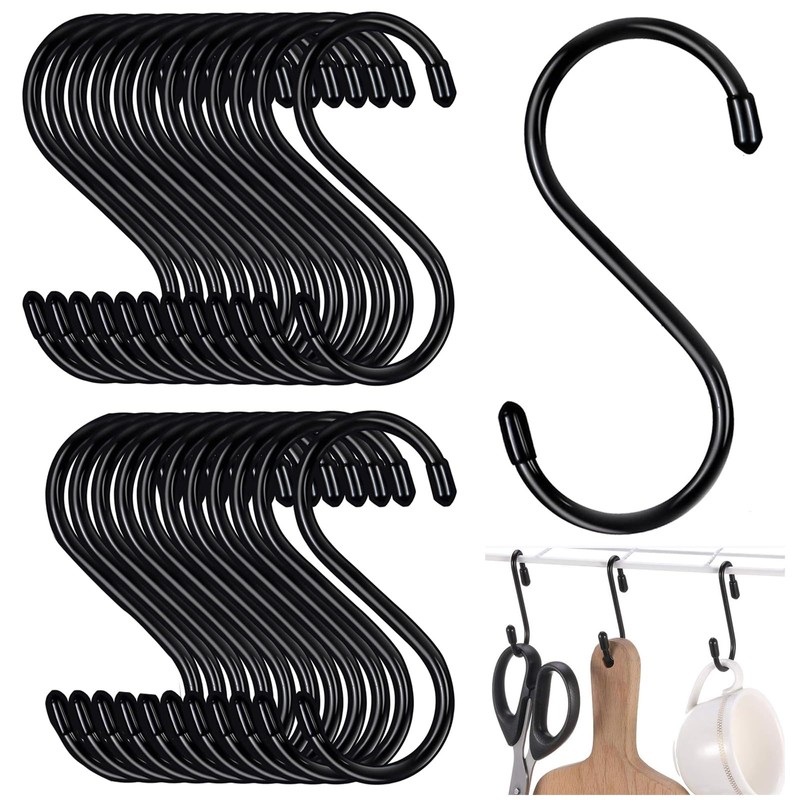 S Hooks Stainless Steel Pack of 24 S Hooks Metal Hooks Black S Hooks Stainles...