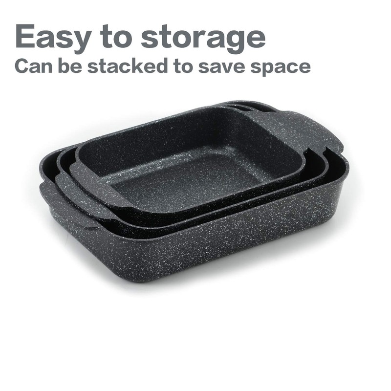 - 【Kitchen Essentials】The 3 sizes of roasting pan not only meet the daily needs of your whole family, but also can be easily organized to save storage space. Additionally, the handle design provides a firm grip when moving the pan.