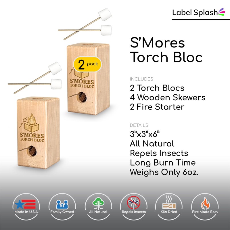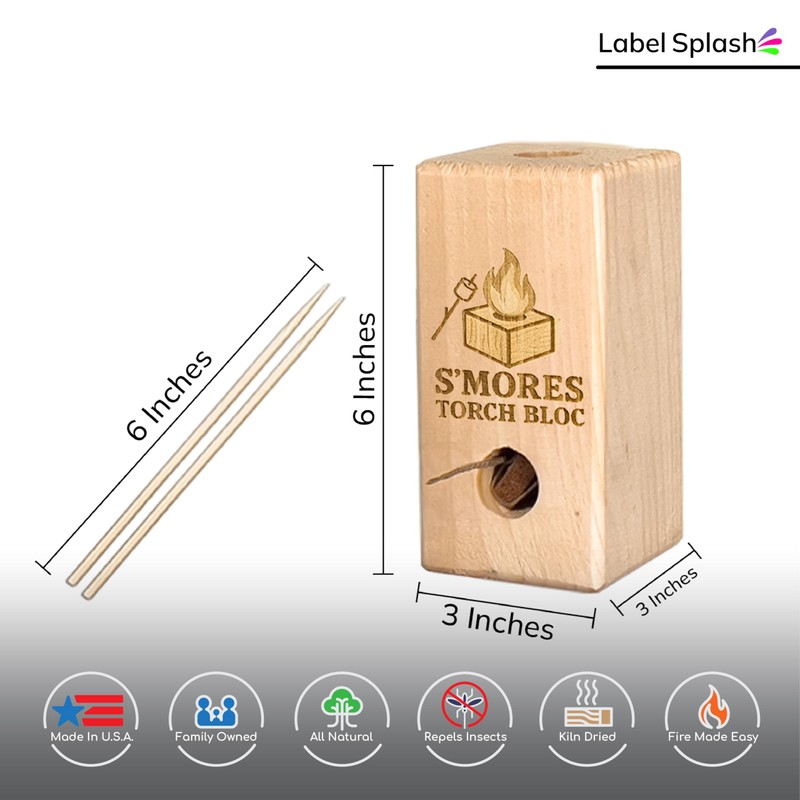 S’Mores Torch Bloc - Portable Instant Mini Long Burning Firewood Campfire Log for Bonfire Campfire Firepit Marshmallow Toasting Kiln Dried Swedish Wood Candle Single Match Start by LABELSPLASH