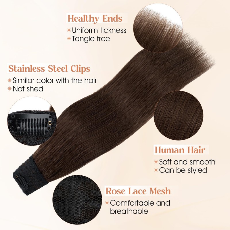 S-noilite Brown Real Human Hair One Piece Clip in Hair Extensions 3/4 Full Head Clip on Remy Hair Extensions for Women Silky Straight V Shaped Weft Invisible Clip in Hair Extensions(14",Medium Brown)