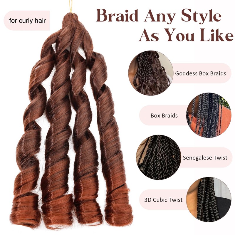 - 【Premium Synthetic Fiber】 Our French Curl braiding hair is meticulously made using premium quality fiber, Hot Water Setting. It's super soft and silky. Curly Braiding Hair Extension is so versatile in the sense that you can make different styles with this french curl crochet hair.It's suitable for any season and any crowd.