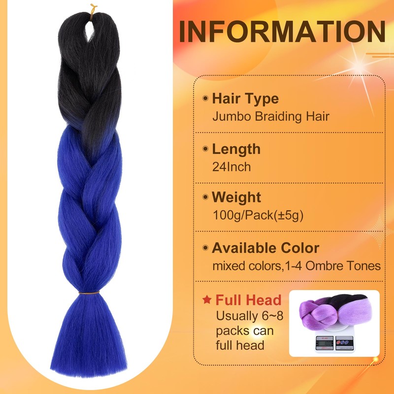 - Color & Size:Ombre/mix Colour,100Gram/pack, Fold Length 24inch(60cm),Unfold Length 48 Inch.Usually 5-6 pieces enough for making a Full Head.