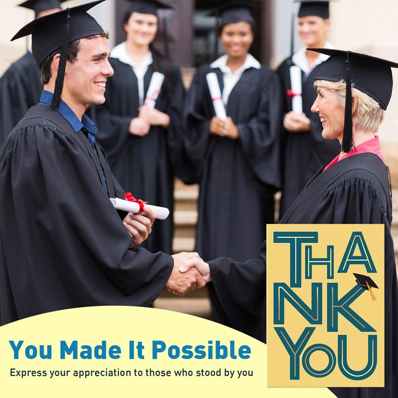 - Your Graduation Gratitude Toolkit — With this 24 pack of thank you cards for teachers and admin, no one gets left out. Every single person who played a role gets the recognition they deserve. These assorted thank you cards spread positivity, strengthen connections, and make this milestone even more meaningful