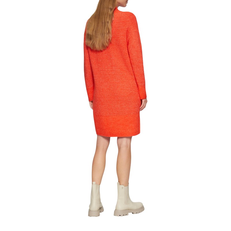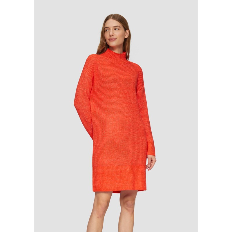 s.Oliver Knitted Dress with Stand-Up Collar and Drop Shoulders, orange